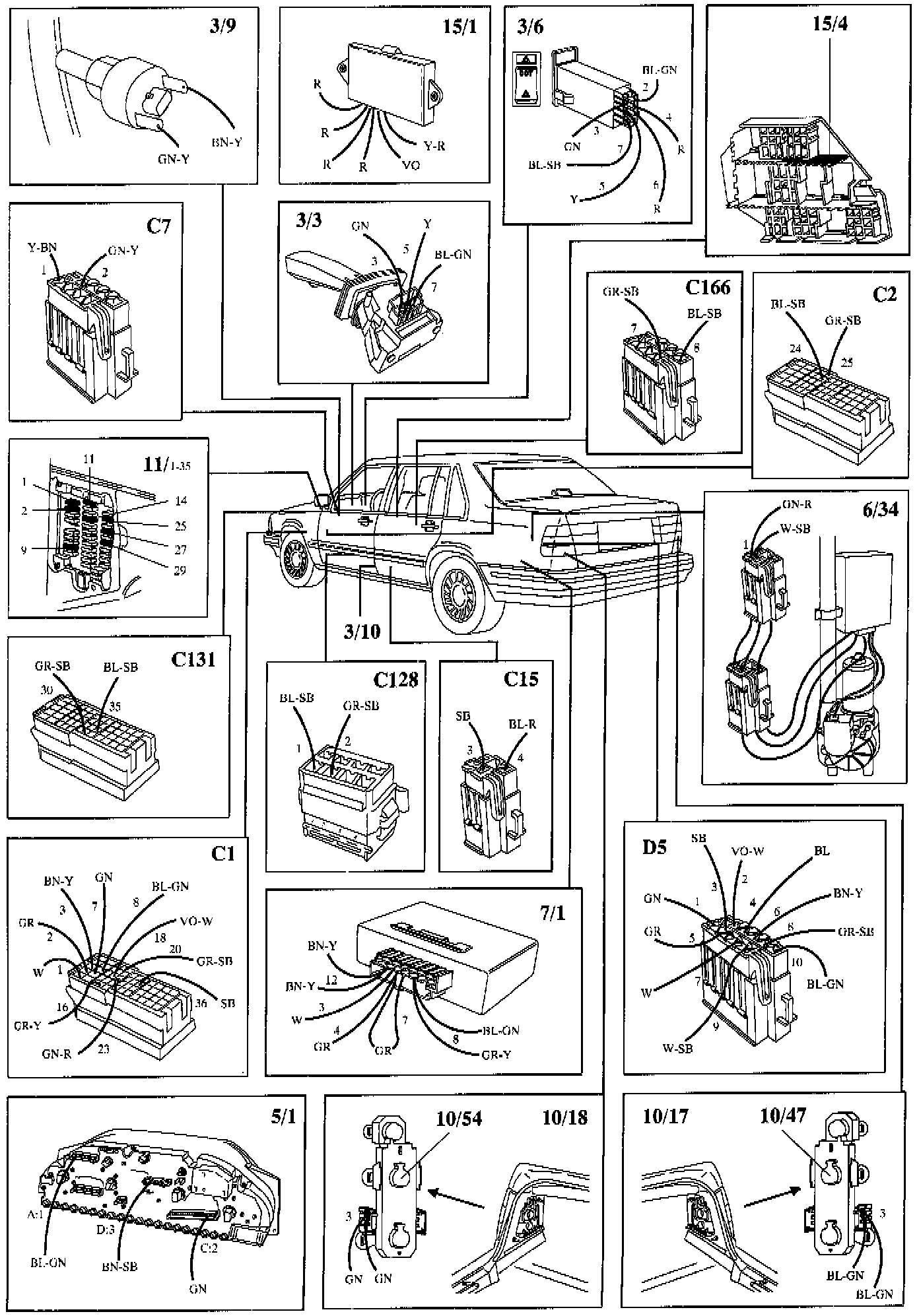 C5 Connector left A-post, 2-pinC6 Connector at relay unit, 4-pin
