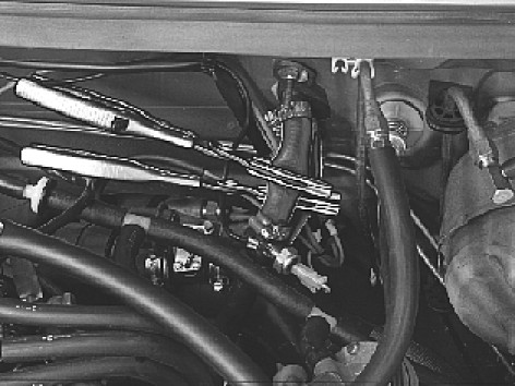 - Bend out the air distributor and pry away the driver's side air duct as necessary.