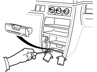 - the 2 screws and detach the panel around the radio opening. Press in the clips on the sides and pry out the panel