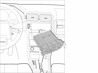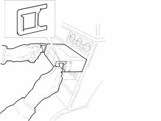 Note! If the vehicle does not have a large front radio, remove the partition between the upper and lower radio compartment.