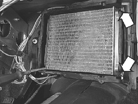 - Install the heat exchanger by threading through the moving parts out to the engine compartment and fasten the mountings, 4 screws. Tighten alternatingly.