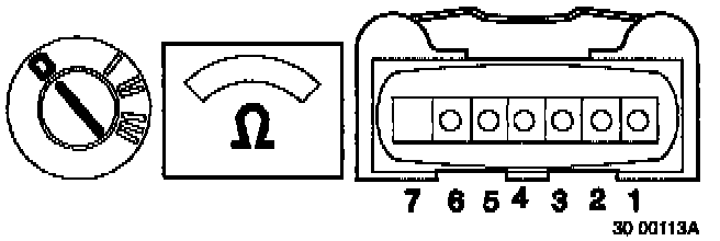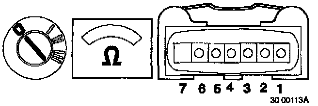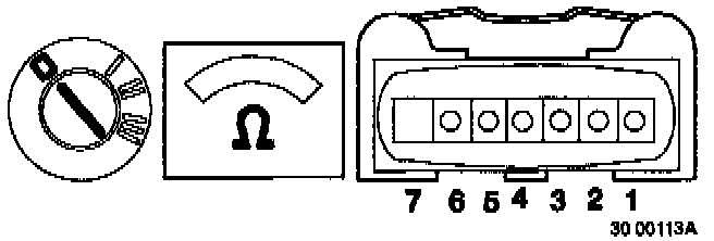 ^ Connect an ohmmeter between power stage connector contact 4 and ground.