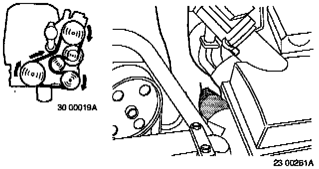 ^ Grip hose between radiator and thermostat housing with hose pliers; carefully bend it down and slack it off from the thermostat housing.