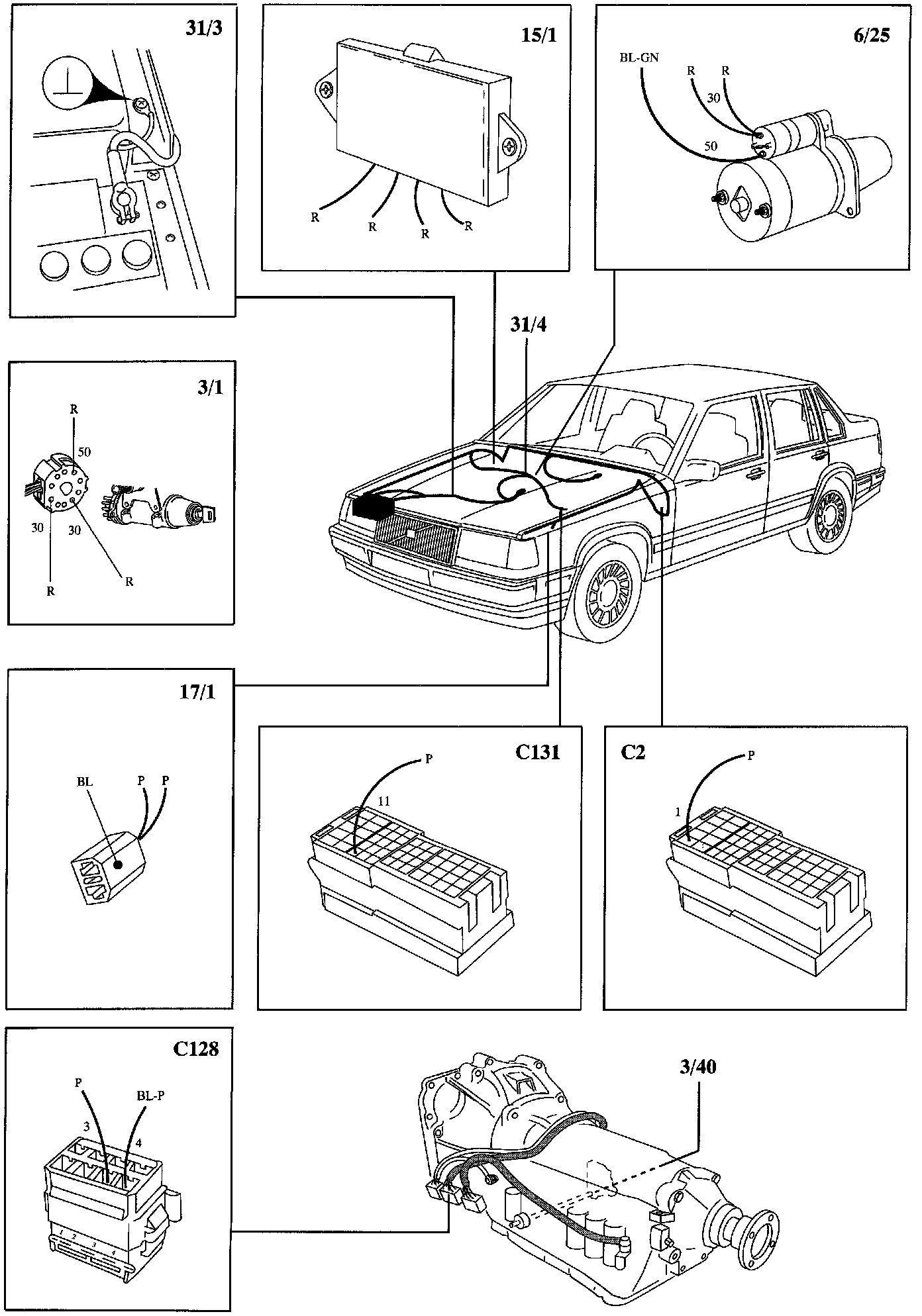 C5 Connector left A-post, 2-pinC6 Connector at relay unit, 4-pin