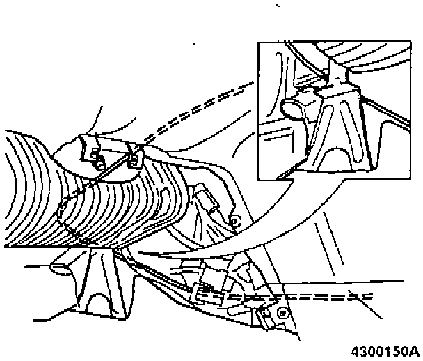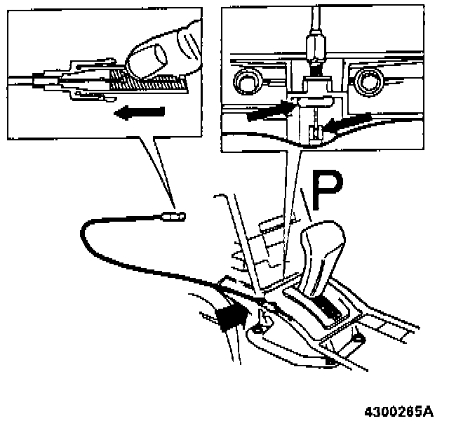 Move gear lever to position P. Check that clearance between cable and operating arm at gear lever end is approx. 0.5 mm (0.02 in.).