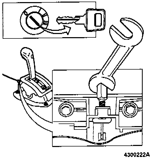If key can be removed, cable is too long. Adjust cable sleeve at gear lever end until key cannot be removed.