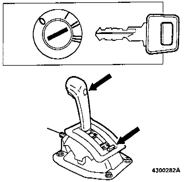 Return lever to position P and remove ignition key. Press override button. It should now be impossible to move lever from position P Override function should operate only when ignition key is in position I or II.