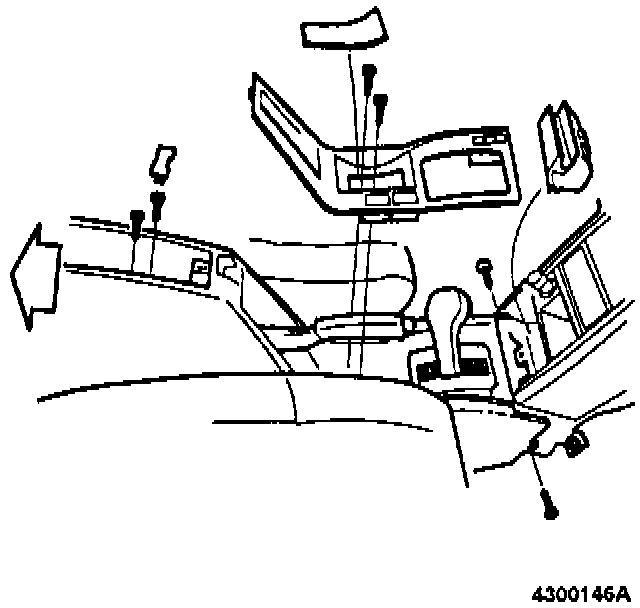 - center console screws in storage compartment and at front end