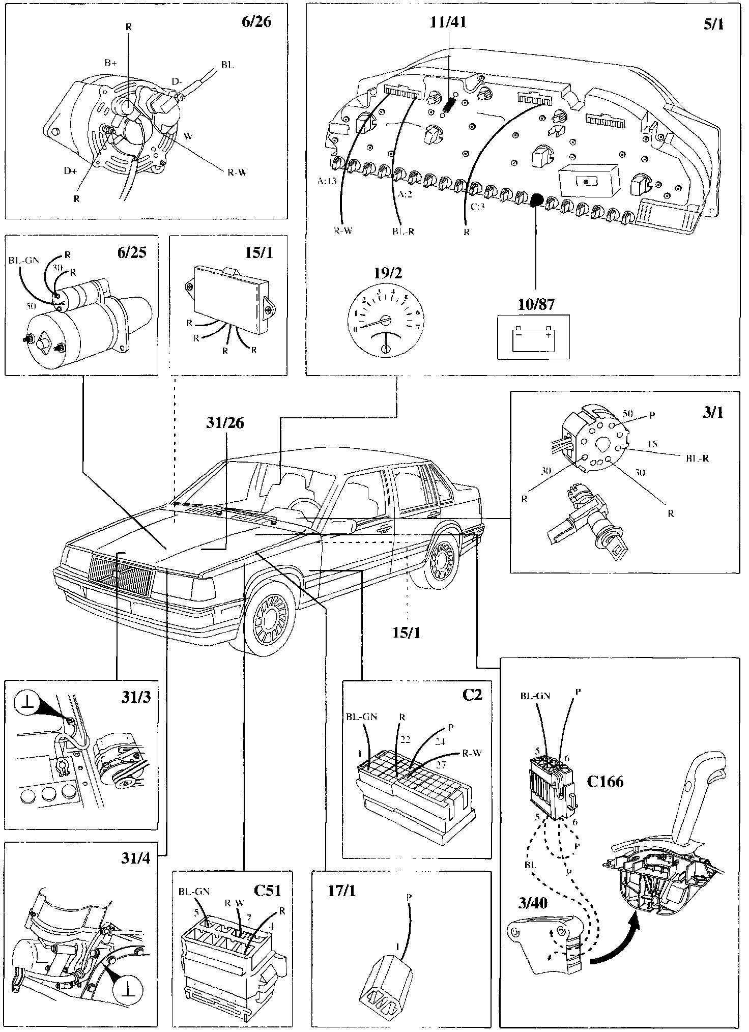 C2 Connector, 53-pin Instrument panel harness - Left wheel housing harness