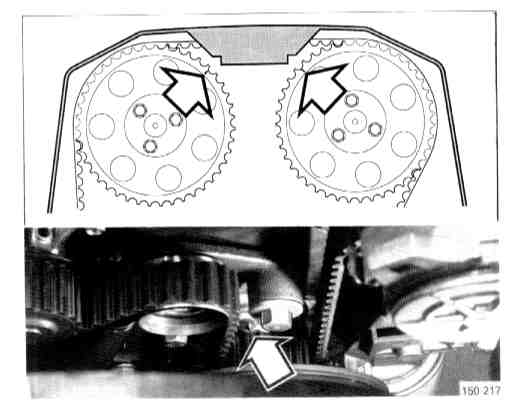Note: Make sure that rear upper timing cover is in place and that the alignment mark on it has not been broken off.