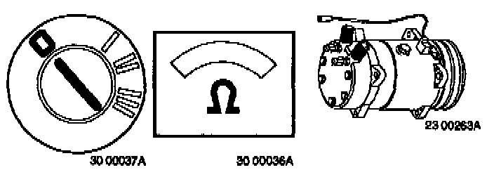 ^ Disconnect compressor single-pin connector. Connect an ohmmeter between engine block and connector (to compressor).