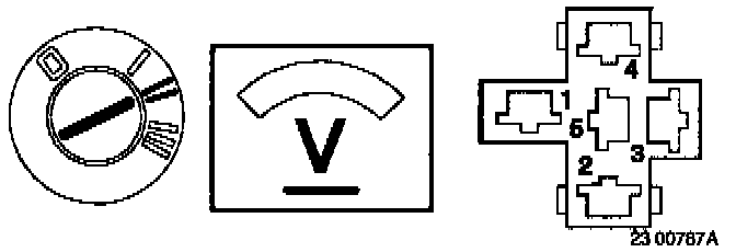 ^ Connect a voltmeter between contact 1 on high pressure switch connector contact 1 (to A/C relay) and ground.