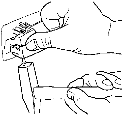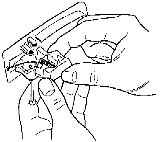 Hold with index finger so that the spring does not fly off the locking button and control mechanism. Wear proper eye protection.