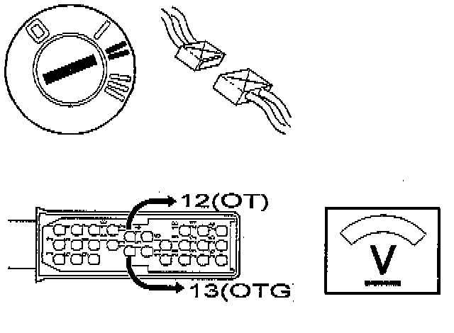 Ignition ON Connect a voltmeter between the transmission connector terminal 12 TCM side and ground.