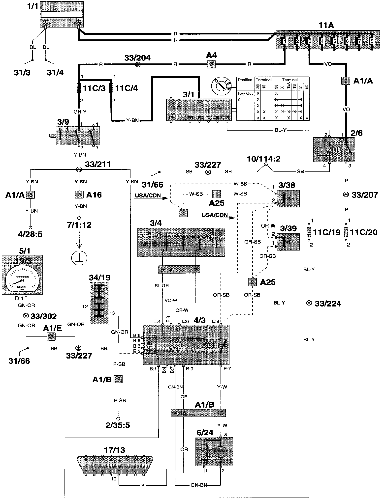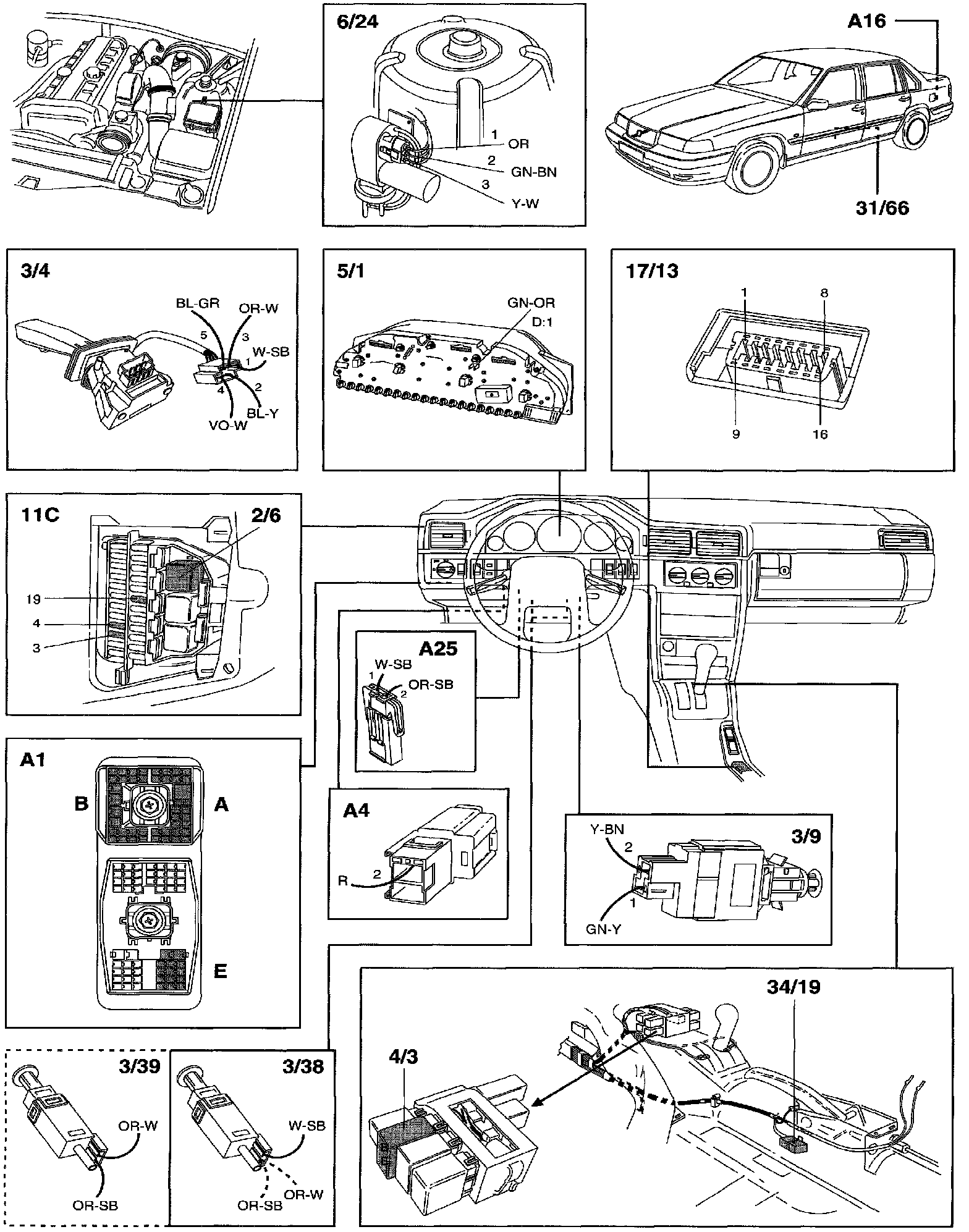 34/19 22-pin connector: ground connection/terminal block at parking brake bracket