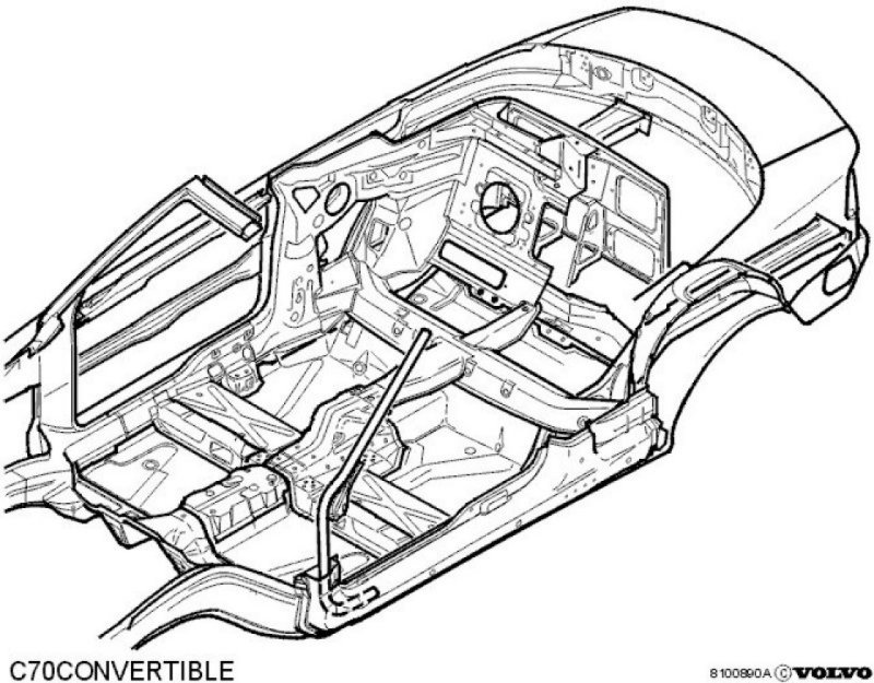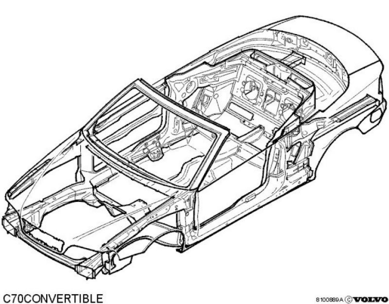 The Service Manual should always be followed when repairing and replacing body components on the C70 Convertible. It is very important that these instructions are followed because the car does not have a roof and the instructions are based on this condition. This means that cutting and joining a body component that may not be cut or joined can lead to a substantial weakening of the bodywork.