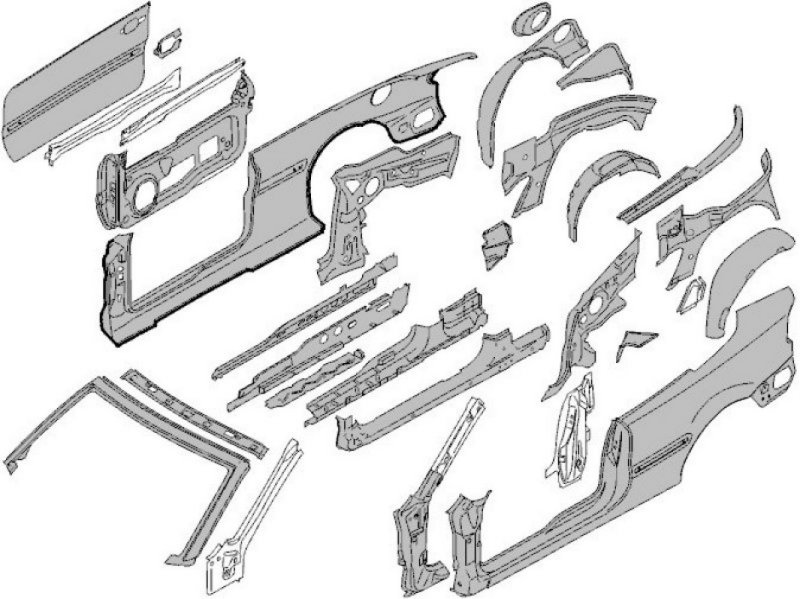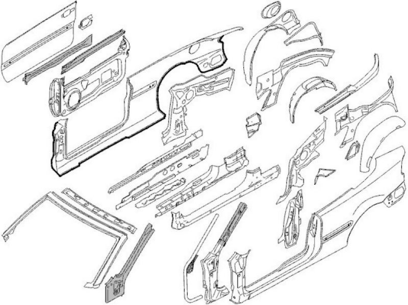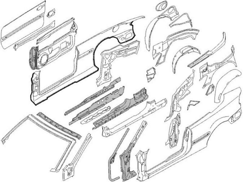 None of the body components made of HSS plate or boron steel may be cut/joined or straightened. If the reinforcements in the A or B posts or door sills are damaged they must be replaced as one unit.