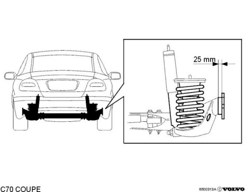 The rear suspension is the same Delta-link system as in the S70/V70. The rear suspension assembly is 15 mm wider on each side, increasing the track width by a total of 30 mm.