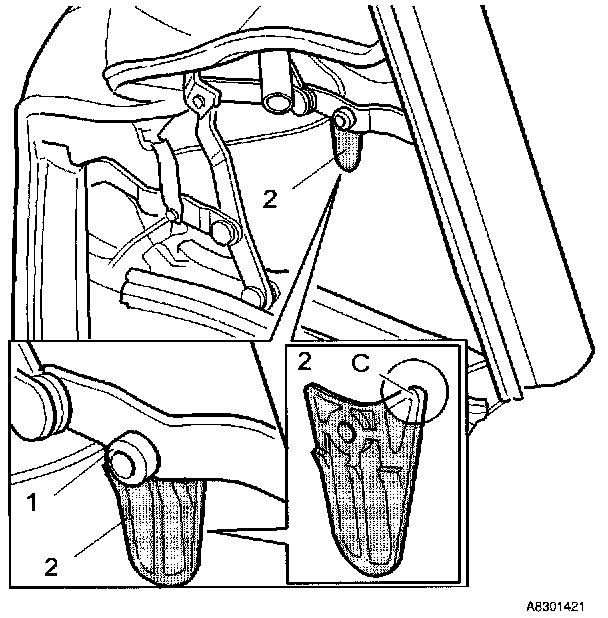The tip of the guide C (see insert in illustration) must point towards the front of the vehicle.