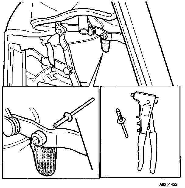 Rivet the guide and stop collar to the link with a pop rivet from the kit ensuring that the pants are mounted as per illustration.