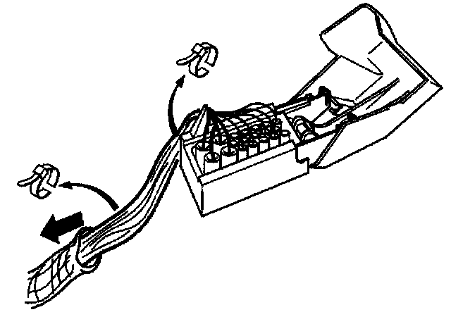 Caution: To disconnect a cable push it in towards the connector while pressing the terminal removal tool in from the other side to release the locking tabs on the cable terminal.