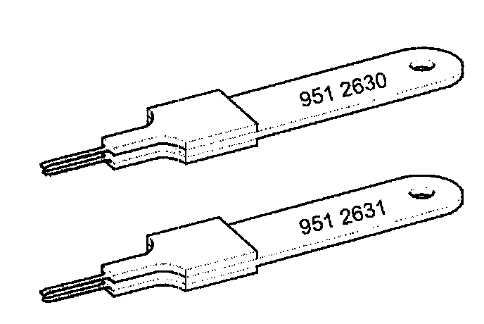 Use terminal removal tool 951 2630 for the small cavities and 951 2631 for the large ones.