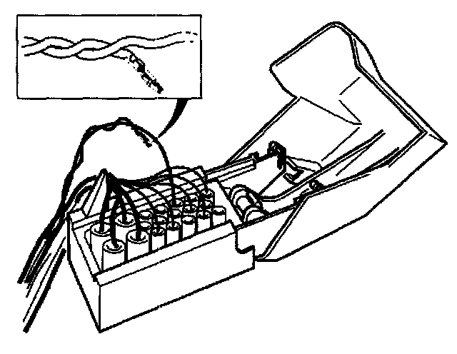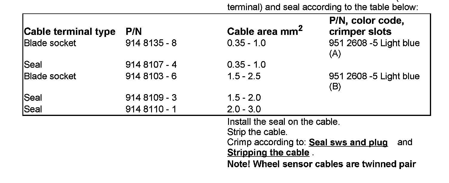 Note: Wheel sensor cables are twinned pair (positive and negative signal) cables for each wheel. It is important that paired cables are twinned in the same way when they are reinstalled in the connector. The cables must be twisted 3 times per 100 mm.