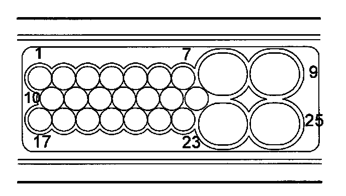 The first and last terminals in the outer smaller rows are marked 1 and 7 and 17 and 23.