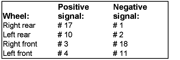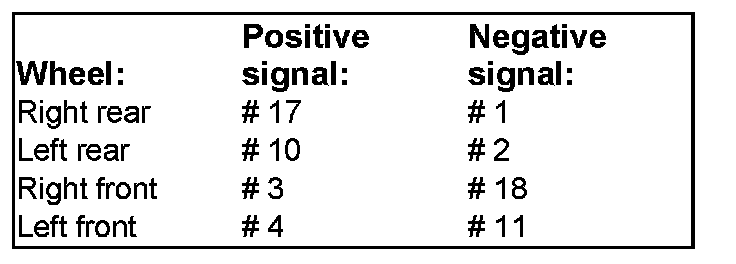 The diagram shows where in the connector each wheel sensor should be connected: