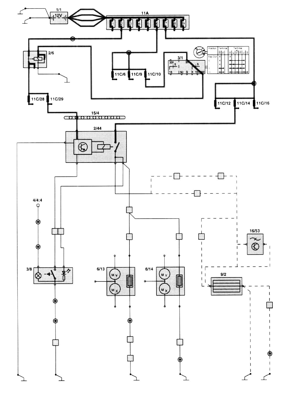Time relay, 2/44, for heating heated rear windshield/powered rear view mirrors not activated.
