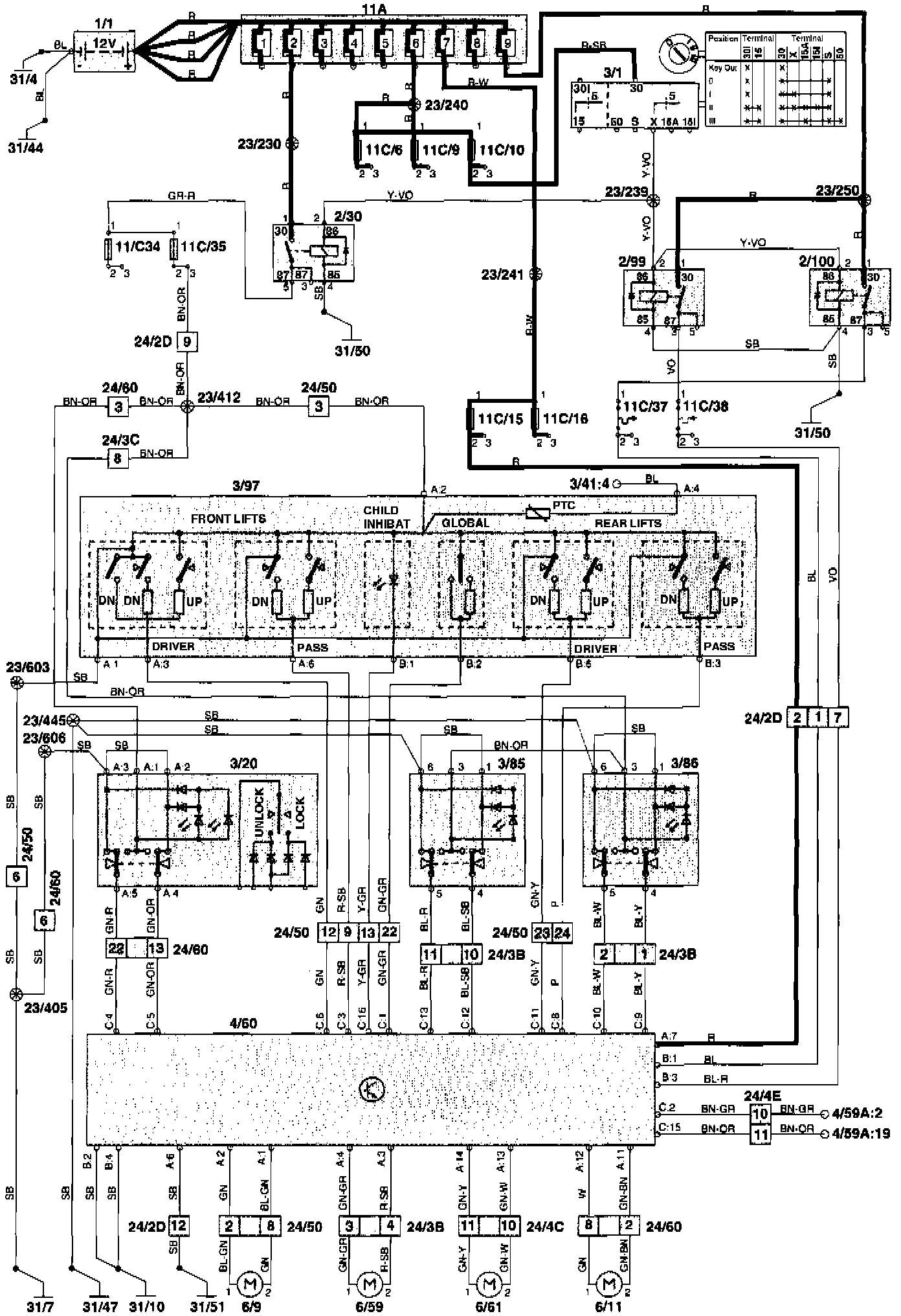 6/9 Power window motor driver's door