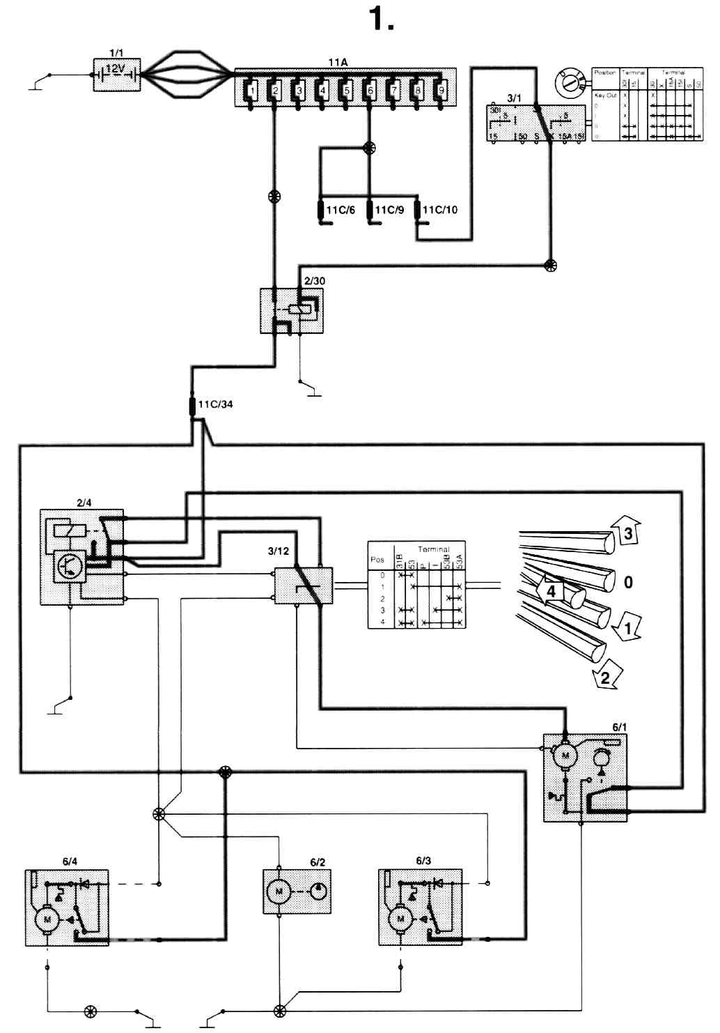 4. Windshield wiper and washer connected. Wiper continues for 2-3 wipes after lever released.