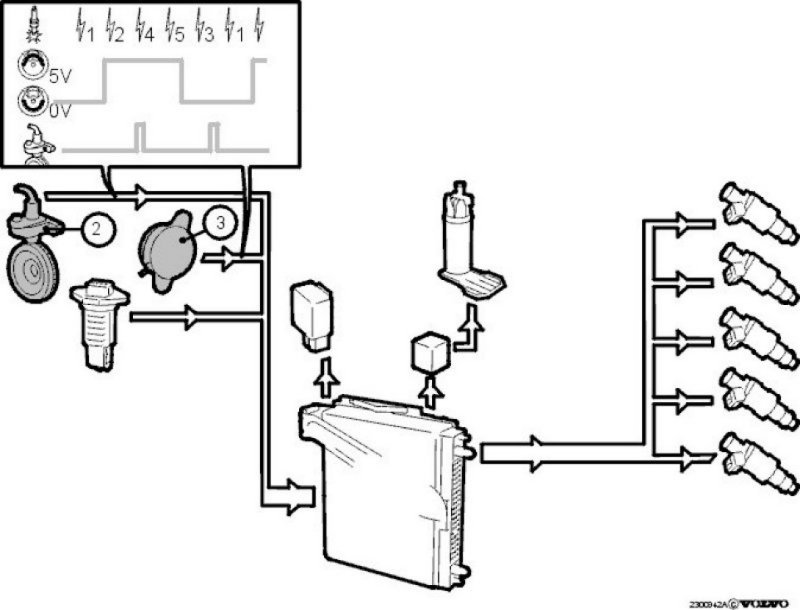 The control module reads of the signals from these two sensors and is then able to determine how much air enters the engine per engine revolution. It then reads its own memory to check what the opening time or the basic quantity should be, 4 ms for example.