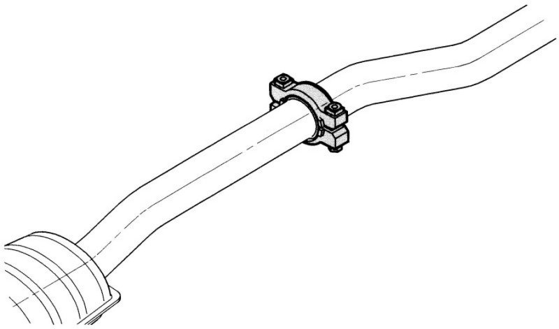 Note! General Check rubber mountings, replace if necessary. The play between the exhaust system and bodywork should not be less than 20 mm.