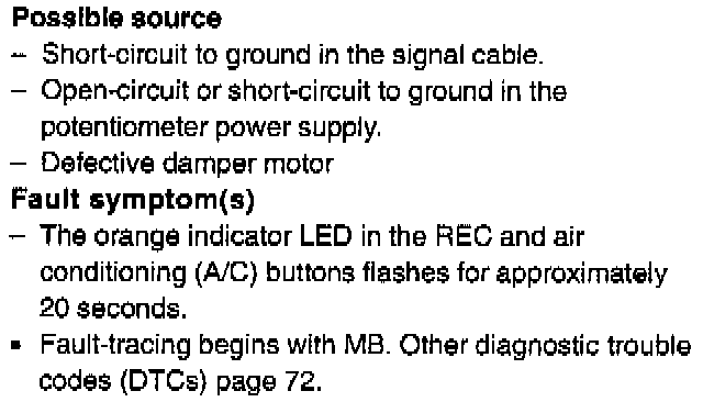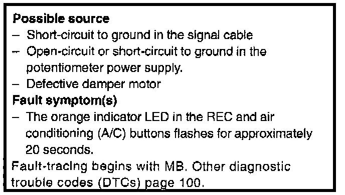 6. MA. Diagnostic trouble codes (DTCs) ECC. (ECC-212 Damper Motor Position Sensor temperature driver.) Stick over Possible source and Fault symptom(s), page 71.