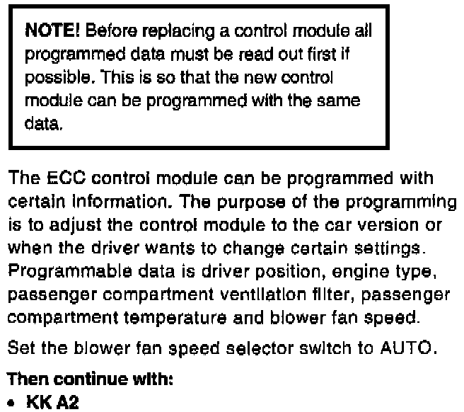 10. Diagnostic trouble codes (DTCs) ECC. KK. Programming ECC control module. KK A1. Cover all the text under title "General on programming" with the box shown, page 153.