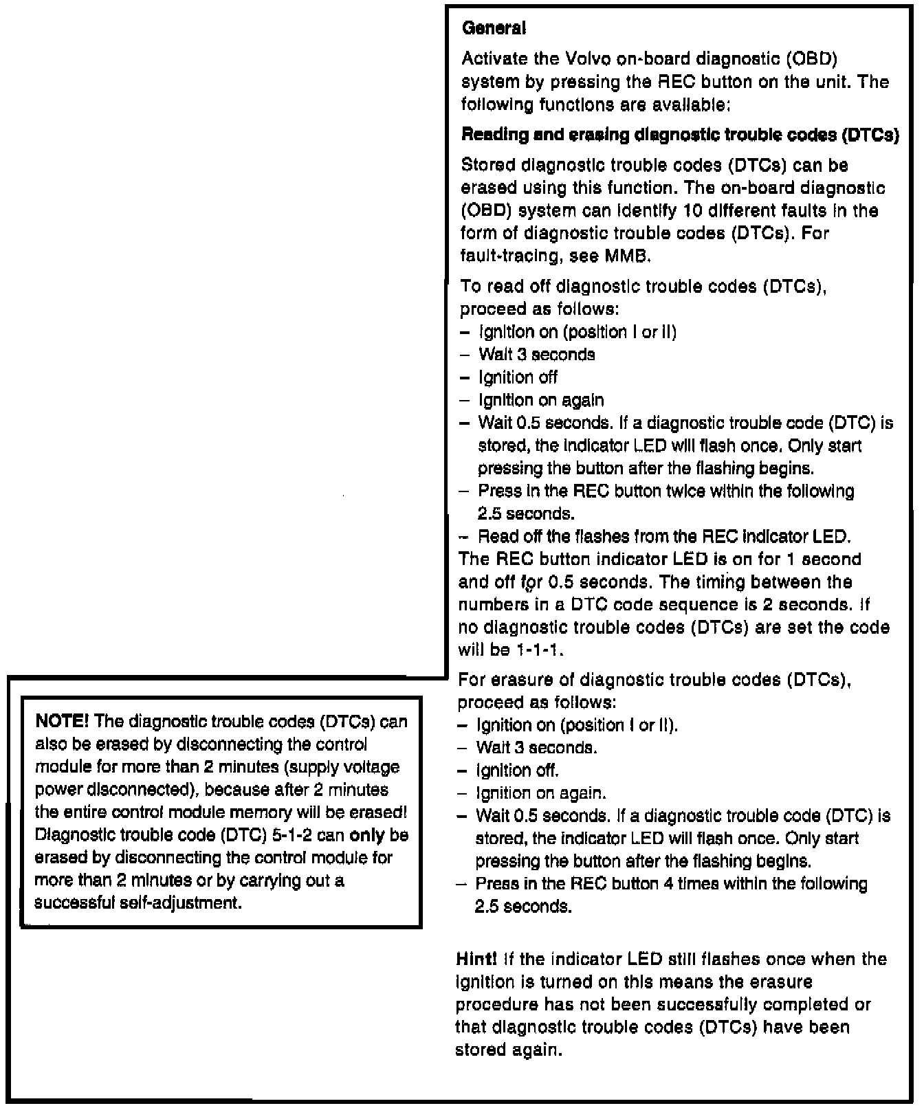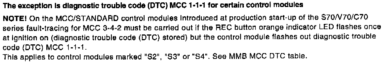 17. Fault-tracing diagnostic trouble codes (DTCs) MCC. MM A Volvo on-board diagnostic (OBD) system, manual climate control (MCC). Cover the whole text with the label shown, page 160.