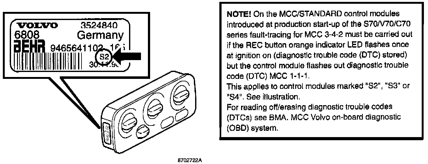 Applies to Service Manual Section 8(87) Climate control unit S70/V70/C70 1998- TP 8710201