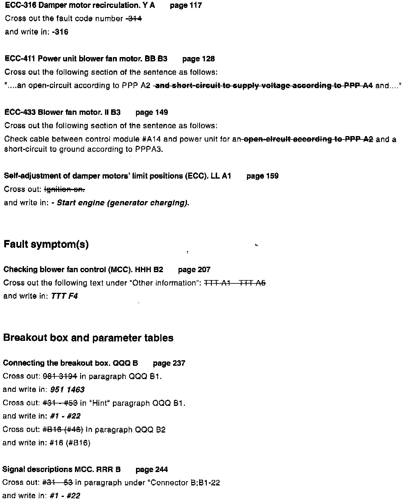 21. Fault symptoms. Checking programming blower fan speed (ECC). AAA B1. Stick over the illustrations under illustration A3000040A, page 193.