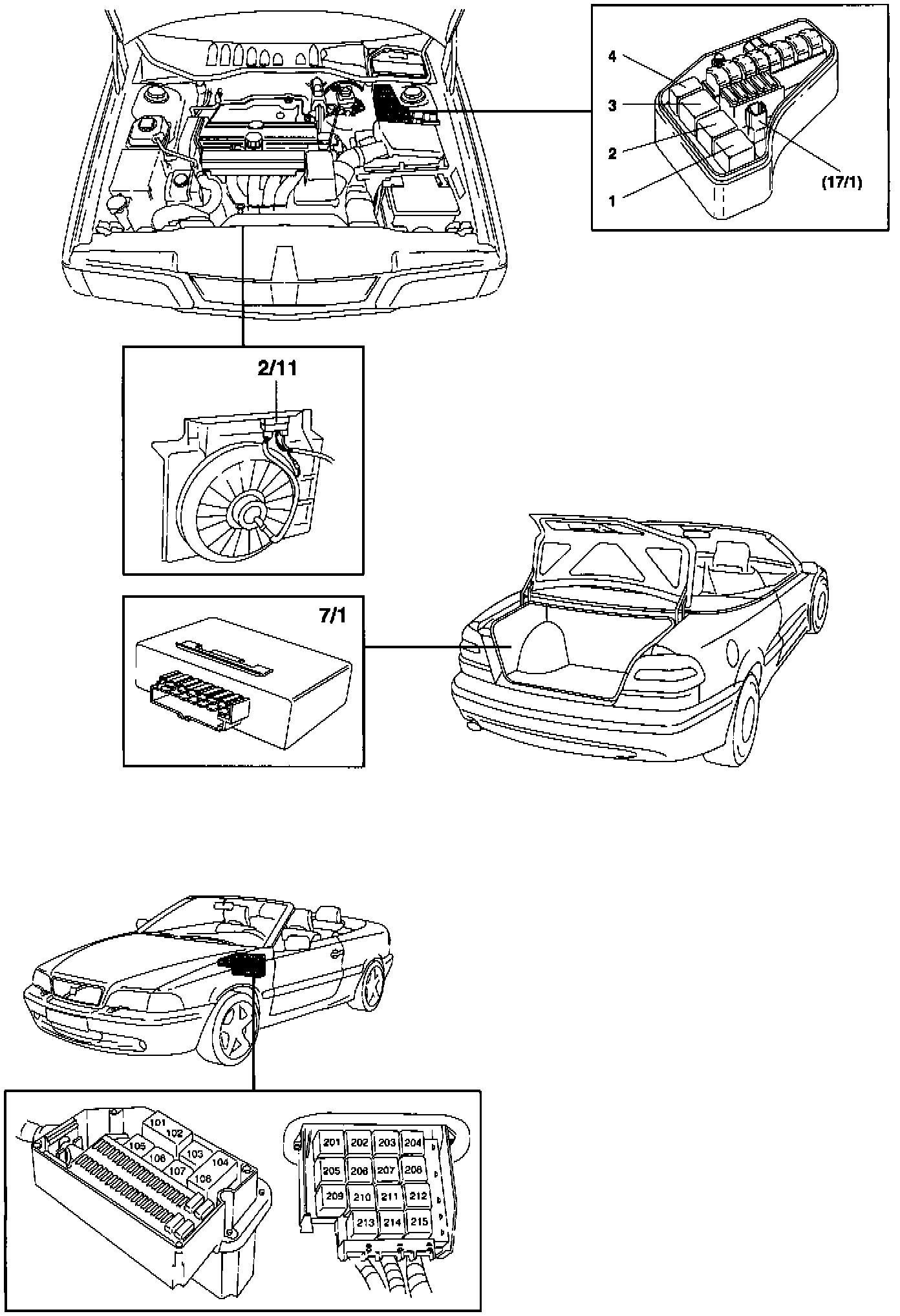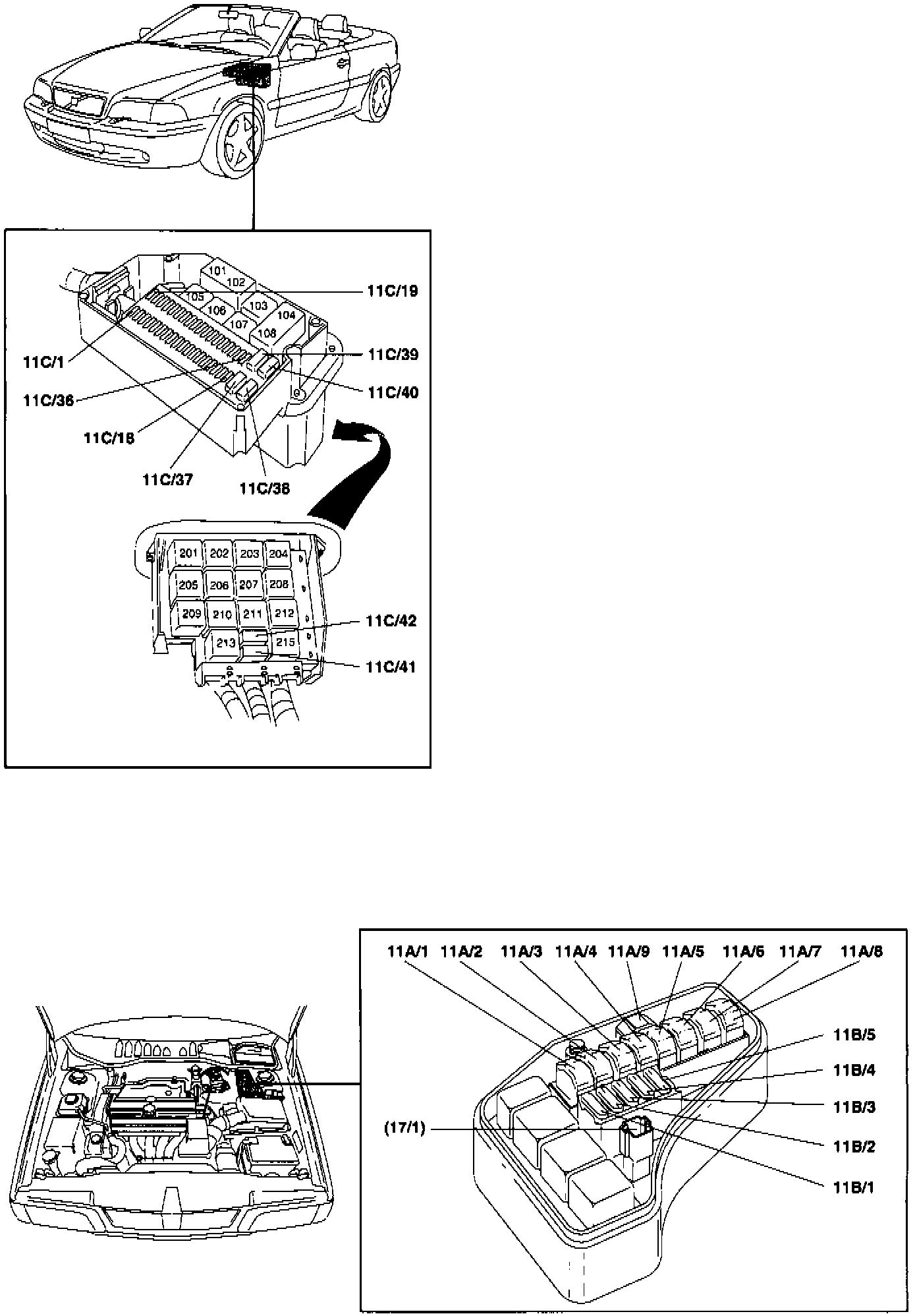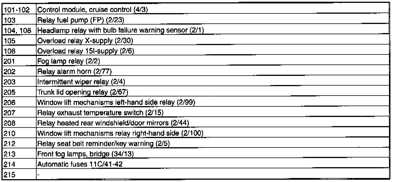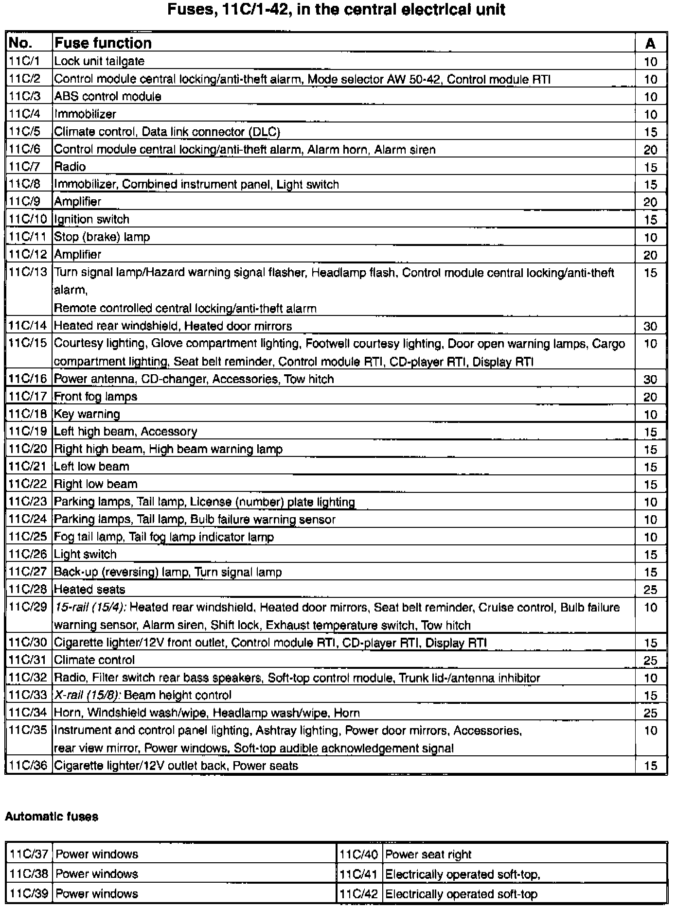 Fuses, 11C/1-42, in the central electrical unit & Automatic Fuses: