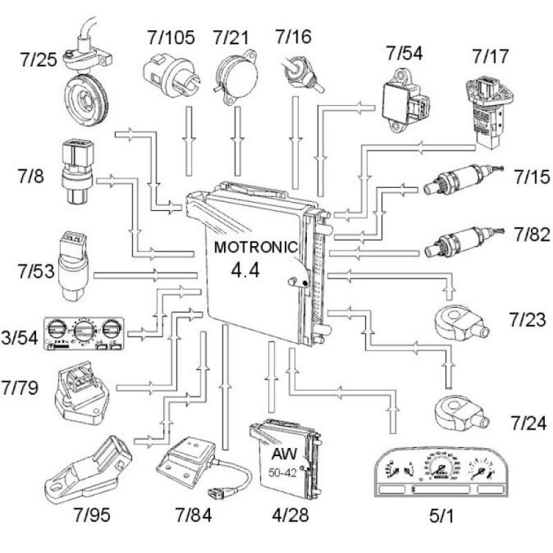 - engine knock (if present), from the two knock sensors (KS) (7/23 and 7/24)