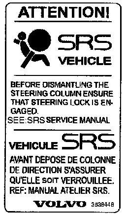 As a reminder that the car is installed with SRS and therefore needs to be handled carefully, labels have been placed in the car and are explained below.