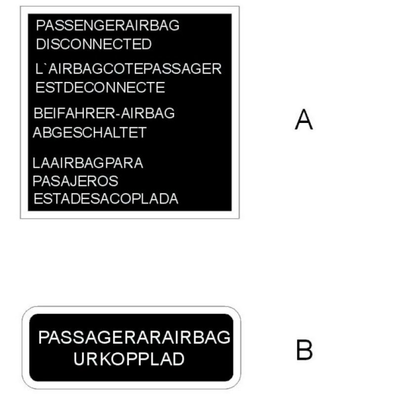 The Swedish language decal is used in the Nordic markets (Sweden, Norway, Denmark, Iceland and Finland). It is located directly below the four- language decal.