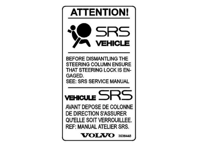 Decals, located in the following positions, call attention to the fact that the car is equipped with SRS and that it requires special treatment.