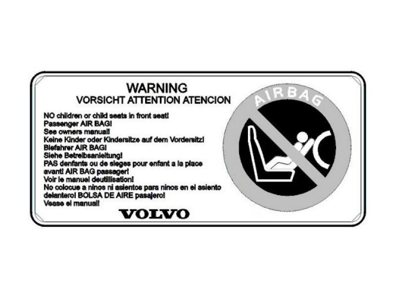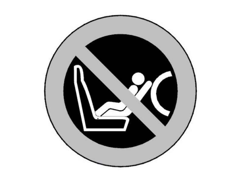 This decal is a warning not to put a child seat on the front passenger seat.