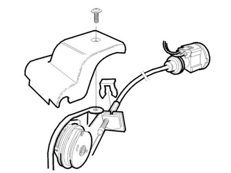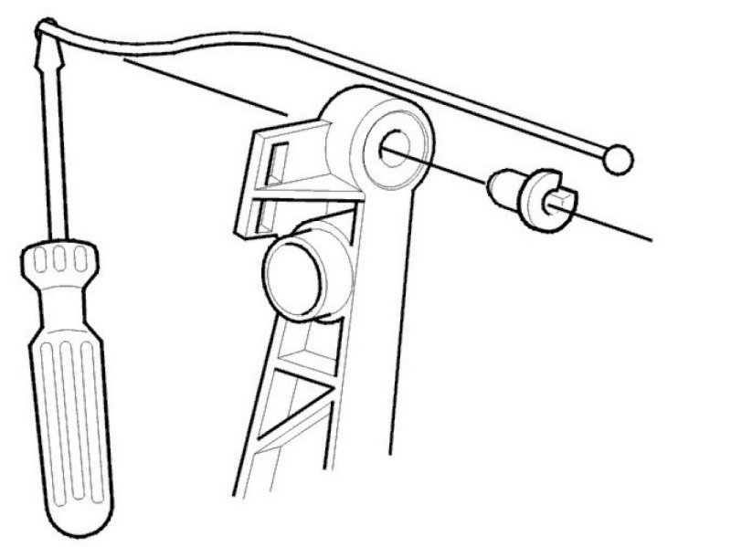Hook the cable with the holder on the accelerator pedal. Make sure the ball bottoms in the holder.