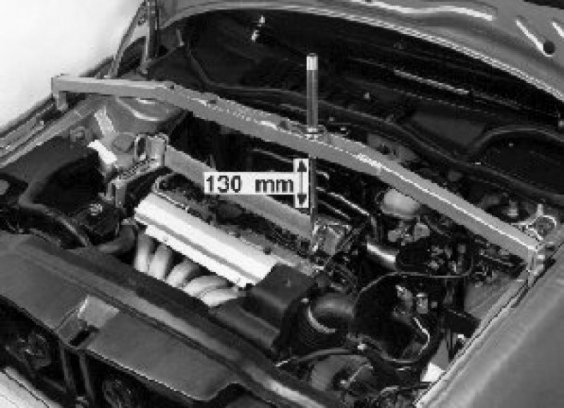 - Lower with lifting hook 999 5460 Lifting hook 999 5460 Lifting Hook until the distance between the lifting beam and sparking plug cover is approx. 320 mm.