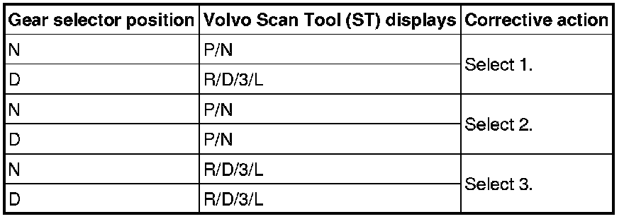 - Move the gear selector to position N and note the gear position displayed by the Volvo Scan Tool (ST).