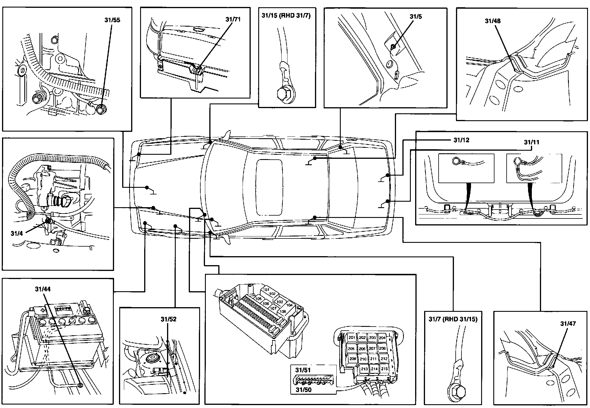 31/44 Engine compartment ground point (battery ground terminal - body)