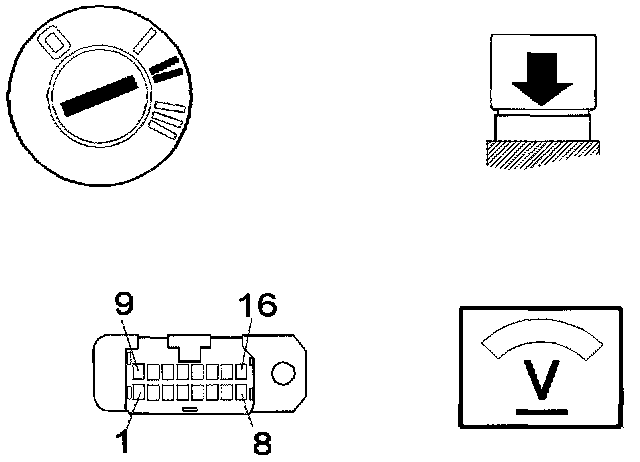 Connect a voltmeter between data link connector (DLC) terminal 7 and ground. The voltmeter should read approximately 9 - 11 V.